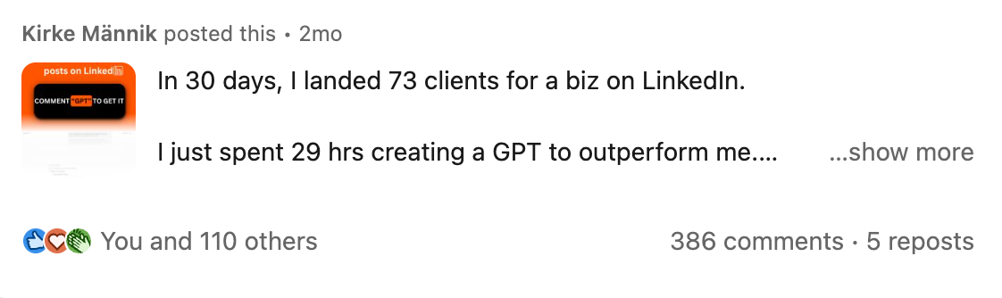 We had no LinkedIn presence at all, and now we’re continuously getting notifications about new conversations with a highly targeted audience, our ICP, and seeing them convert into revenue.